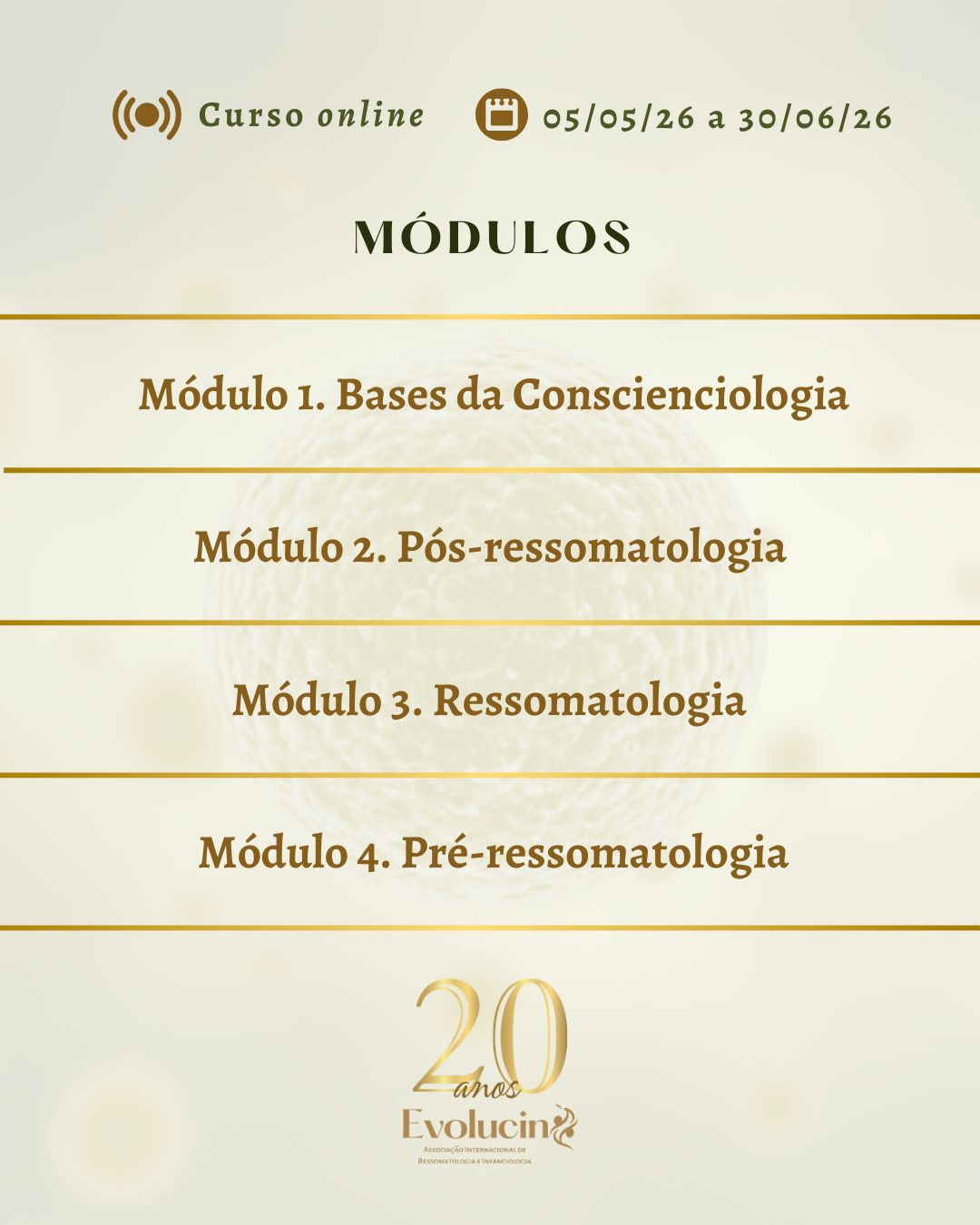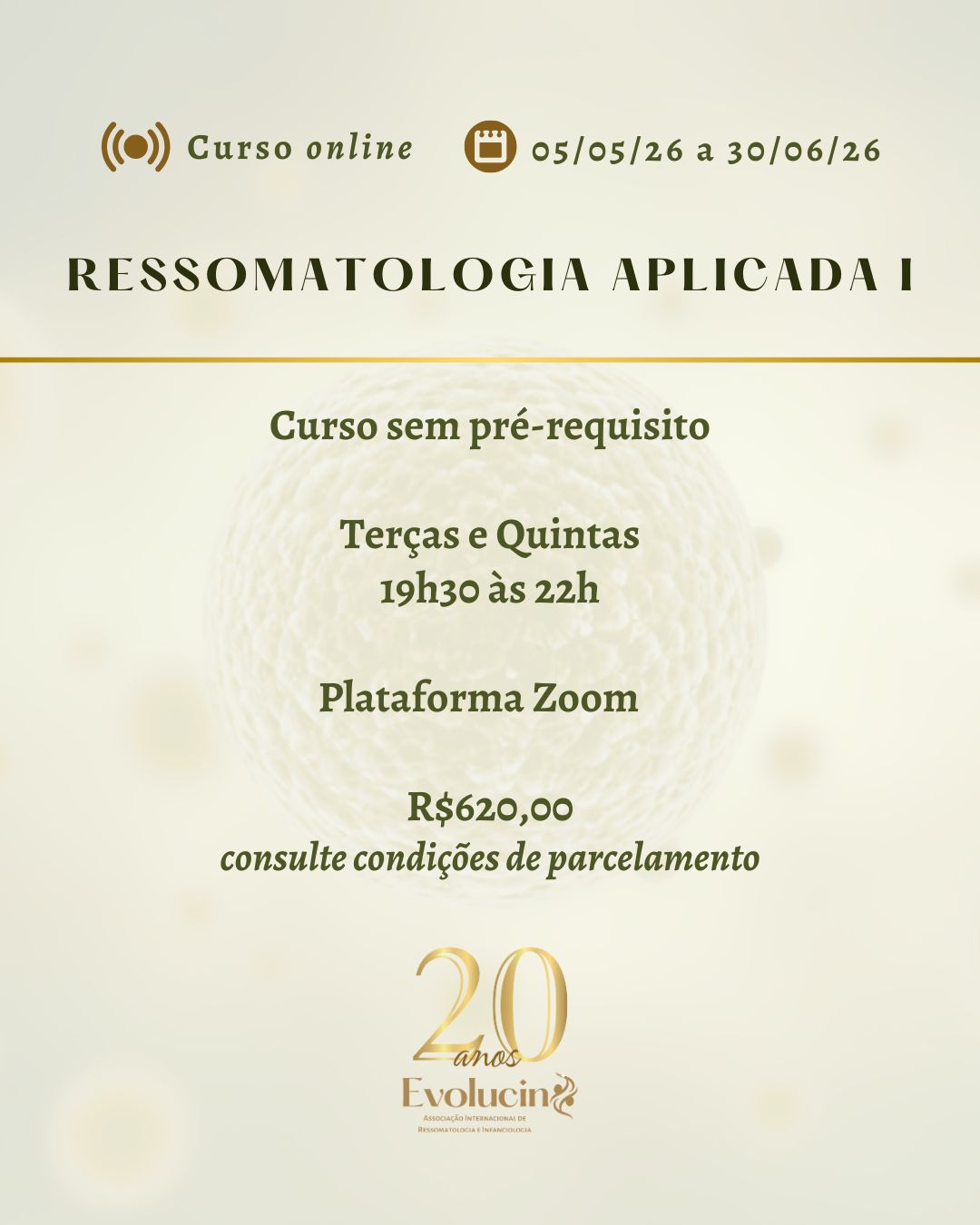 A Evolucin tem o prazer de anunciar nossa próxima turma do curso online Ressomatologia Aplicada I