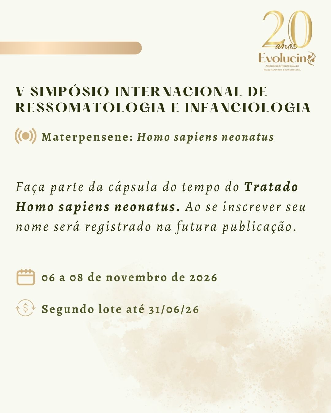 ✨ O projeto terá um marco especial no V Simpósio Internacional de Ressomatologia e Infanciologia, de 06 a 08 de novembro de 2026, em formato híbrido, com realização presencial em Foz do Iguaçu – PR.